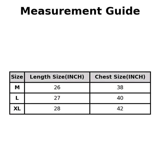 XL (Chest Size: 42 in, Length Size: 28 in)