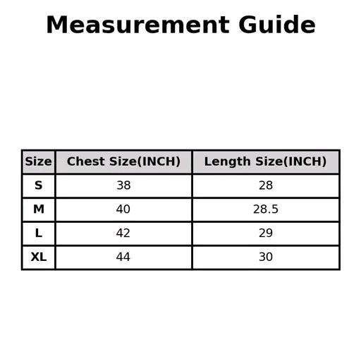 L (Chest Size: 42 in, Length Size: 29 in)