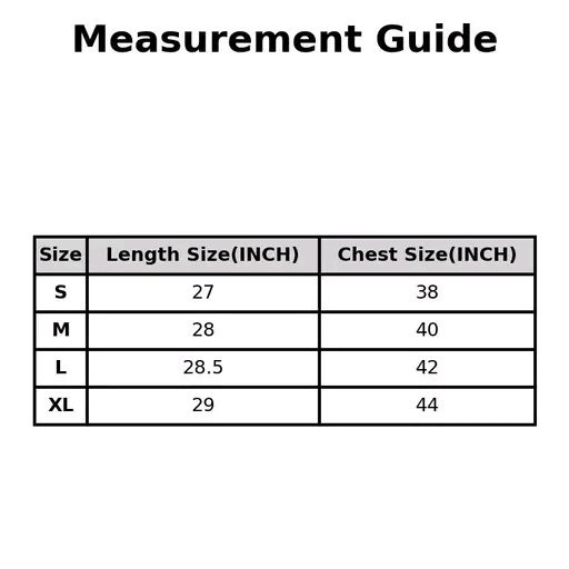 XL (Chest Size: 44 in, Length Size: 29 in)